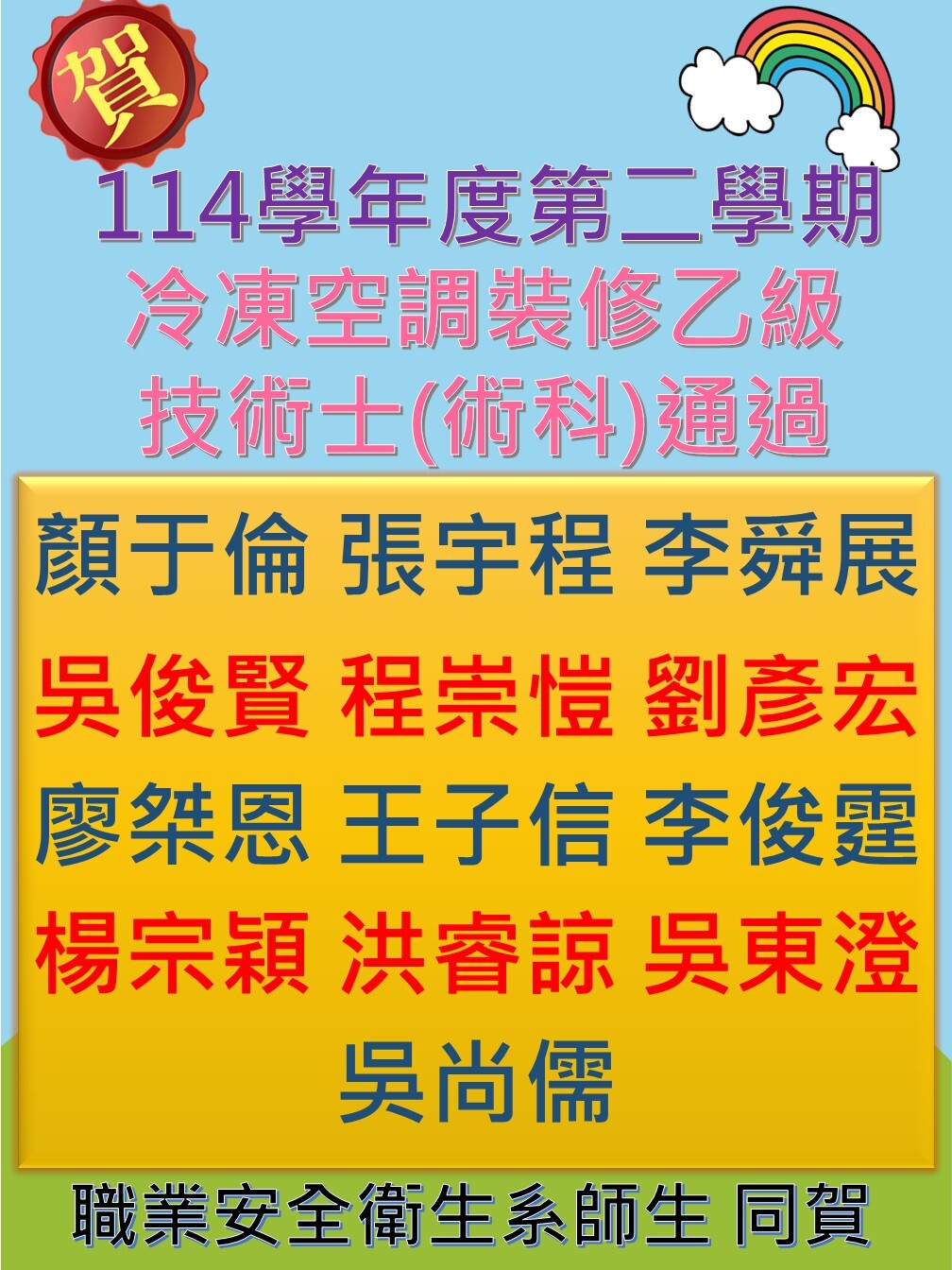 <![CDATA[賀!114-2本系冷凍空調裝修乙級技術士術科通過]]>